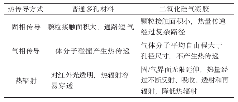 表2 二氧化硅氣凝膠與普通多孔材料傳熱方式對比
