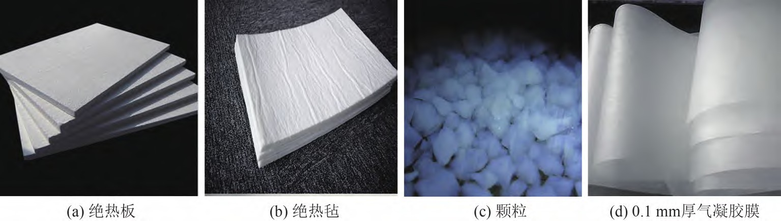 高速列車因運(yùn)行環(huán)境變化大、時速高、廂體夾層空間狹小,設(shè)計(jì)時青睞于高性能(如保溫隔熱、防火防爆、減振吸能、隔音降噪等)材料。二氧化硅氣凝膠復(fù)合材料具有輕質(zhì)、絕熱、隔音、阻燃、疏水以及環(huán)保等優(yōu)異性能,在未來高速列車車體優(yōu)化設(shè)計(jì)中具有廣泛的潛在應(yīng)用價值。目前主要的二氧化硅氣凝膠復(fù)合制品有絕熱板、絕熱氈、涂料、膜、顆粒、紙和異形件等,部分復(fù)合制品如圖3 所示。