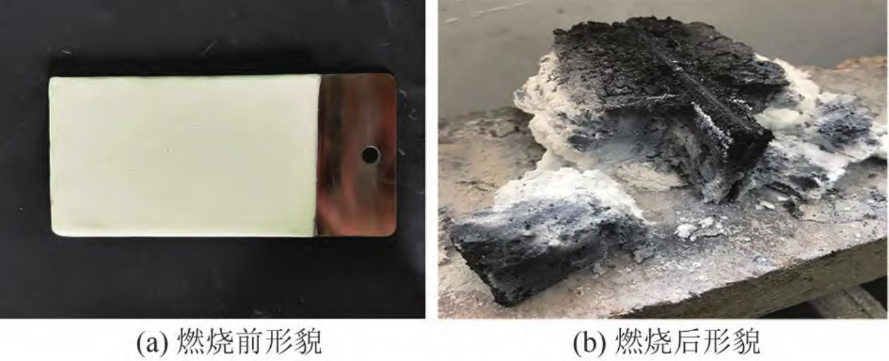 圖5 隔熱阻燃涂料燃燒前后形貌對比