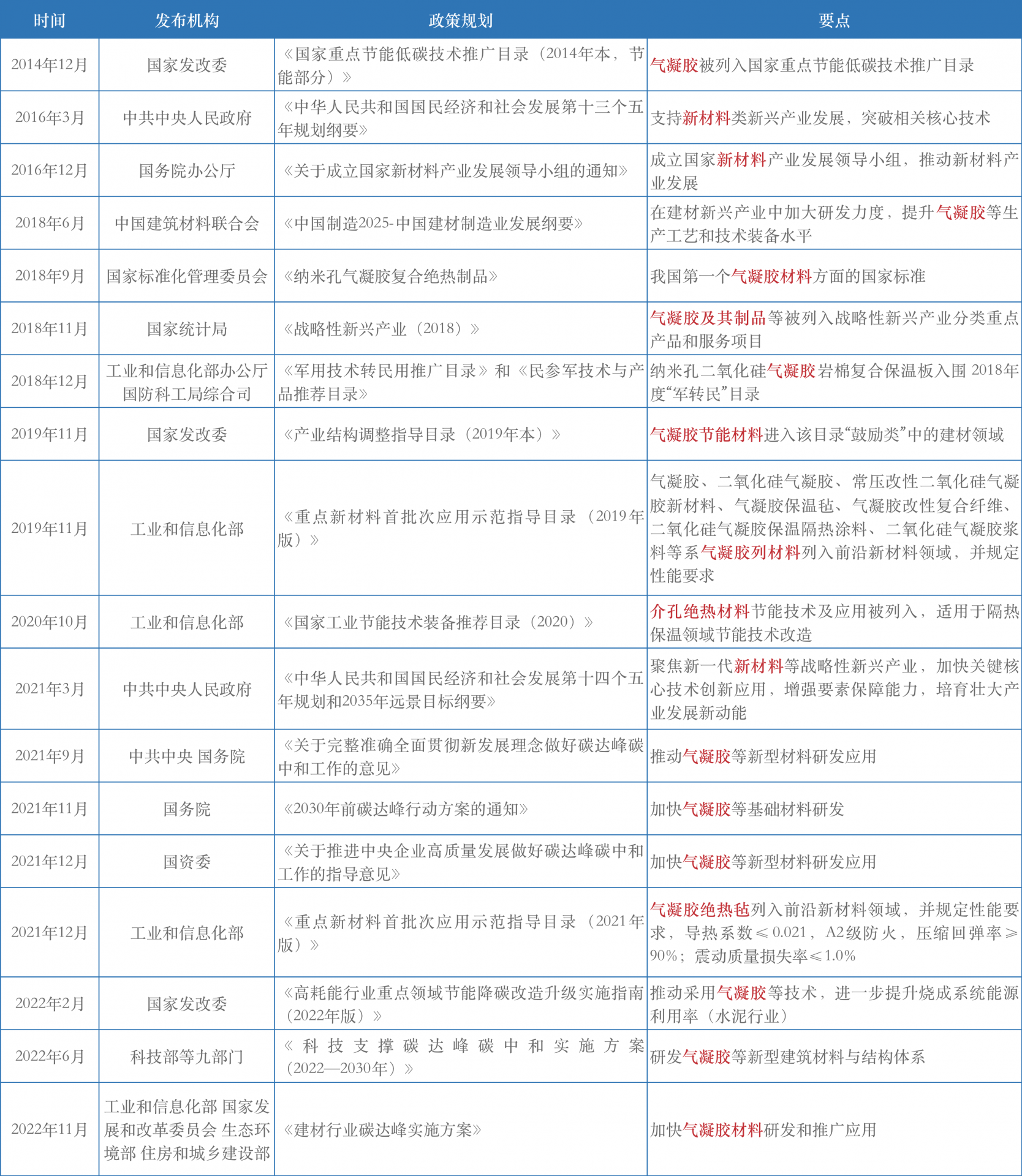國(guó)家層面氣凝膠行業(yè)相關(guān)政策